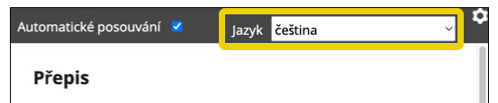 Pro otevření překladů ve zvláštním prostoru pro přepis: